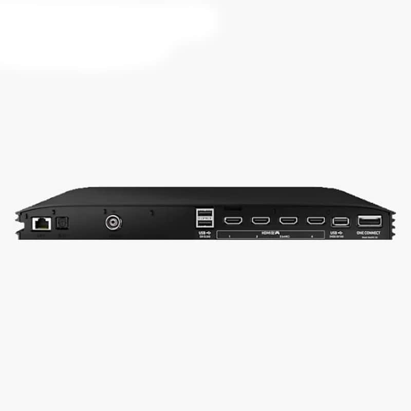 مجموعه کامل پورتها و اتصالات در تلویزیون سامسونگ 65S95D، سازگاری آن با تمام دستگاههای مدرن را برای شما تضمین میکند. همانطور که اشاره شد، تمامی این پورتها به صورت هوشمندانه در جعبهی Slim One Connect Box قرار گرفتهاند تا از شلوغی کابل در پشت تلویزیون جلوگیری شود. این تلویزیون دارای 4 درگاه HDMI است که همگی از استاندارد HDMI 2.1 پشتیبانی میکنند. این به معنای قابلیت انتقال داده با سرعت بالا برای نمایش محتوای 4K با نرخ نوسازی 144 هرتز، و پشتیبانی کامل از ویژگیهای گیمینگ پیشرفته مانند VRR و ALLM است. علاوه بر این، 3 پورت USB برای اتصال حافظههای جانبی مانند فلش مموری و هارد دیسک، و همچنین برای تأمین برق دستگاههای دیگر در نظر گرفته شده است. برای اتصال به اینترنت، علاوه بر وای-فای داخلی (Wi-Fi 5)، یک پورت Ethernet (LAN) برای اتصال سیمی پایدار و سریع نیز وجود دارد. خروجی صوتی دیجیتال (اپتیکال) برای اتصال به سیستمهای صوتی قدیمیتر و یک ورودی آنتن (RF) نیز مجموعه پورتهای فیزیکی را تکمیل میکنند. در زمینه اتصالات بیسیم، این تلویزیون به بلوث نسخه 5.2 مجهز است که اتصال پایدار و باکیفیت به هدفونها، ساندبارها و دیگر دستگاههای بلوتوثی را تضمین میکند.