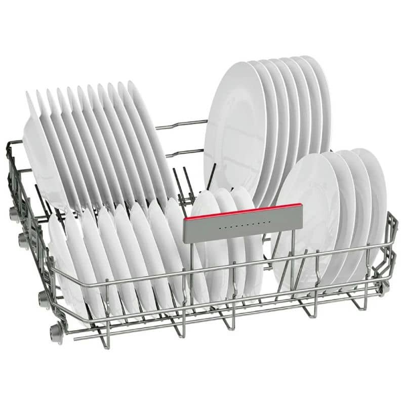 این دستگاه یک ماشین ظرفشویی 3 سبد بوش 65Q است که فضای داخلی آن کاملا هوشمندانه طراحی شده است. سبد سوم که در بالاترین قسمت قرار دارد VarioDrawer نامیده می شود؛ این سبد جایگزین سبد قاشق و چنگال سنتی شده و فضای بیشتری را در سبد پایین برای بشقاب ها آزاد می کند. سبد میانی مجهز به سیستم Rackmatic است. این سیستم به شما اجازه می دهد حتی زمانی که سبد پر از ظرف است، ارتفاع آن را در 3 سطح مختلف و تا 5 سانتی متر جابجا کنید. همچنین قابلیت Intensive Zone در این مدل وجود دارد که با فعال کردن آن، فشار آب در سبد پایین برای شستن قابلمه ها به شدت افزایش می یابد، در حالی که سبد بالا با فشار ملایم به کار خود ادامه می دهد.