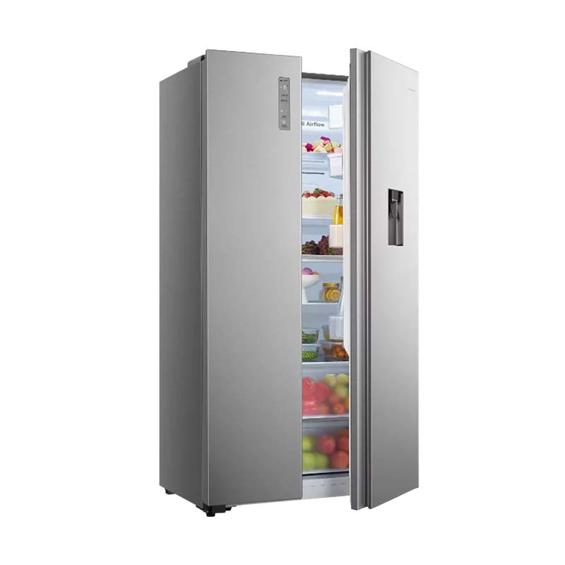 یخچال فریزر هایسنس RS670 یکی از محصولات پر طرفدار برند هایسنس محسوب می شود که در سال 2023 با مونتاژ کشور چین وارد بازار شده است رنگ بدنه این یخچال فریزر نقره ای بوده و خیلی راحت با هر نوع کابینتی ست می شود و جلوه بسیار زیبایی به اشپزخانه شما می بخشد. ظرفیت این یخچال فریزر به 28 فوت می رسد و برای خانواده های با جمعیت کم مناسب است. این محصول با بهره گیری از موتور اینورتر دیجیتالی نسبت به سایر یخچال های دیگر انرژی کمتری مصرف کرده و تنها 39 دسی بل صدا تولید می کند. هایسنس برای بخش طراحی این Rs670 از بهترین جایی نگه داری مواد غذایی استفاده کرده است که به کاربر این امکان را می دهد تا مواد غذایی زیادی را در این یخچال فریزر نگهداری کند. این یخچال فریزر هایسنس با بهره گیری از یک آب ریز مخزن دار بر روی درب یخچال به شما این امکان را می دهد تا بدون نیاز به باز کردن درب اصلی بتوانید به آب سرد دسترسی داشته باشید. در ادامه به برسی دقیق ویژگی های Rs670 می پردازیم.