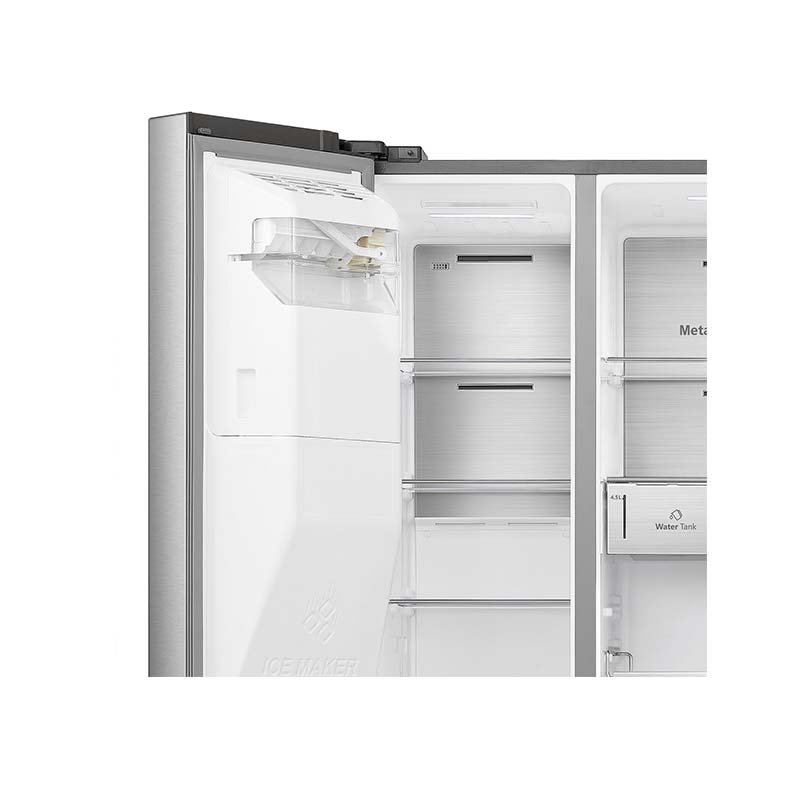 سمت راست Rs819 به یخچال و سمت چپ آن به فریزر اختصاص داده شده است. هایسنس برای دستگیره های این یخچال فریزر از نوع تو کار استفاده کرده است که خیلی راحت می توانید آنها را باز و بسته کنید. جنس بدنه این یخچال فریزر ساید بای ساید از استیل ضد زنگ می باشد و علاوه بر سبکی از استحکام بالایی نیز برخوردار است. در قسمت درب یخچال این محصول شما شاهد آب ریز و یخ ساز اتوماتیک هستید که به آب شهری متصل است و شما بدون نیاز به پر کردن مخزن می توانید به آب و تعداد زیادی از یخ دسترسی داشته باشید.