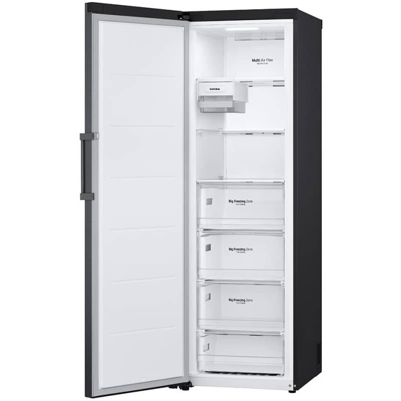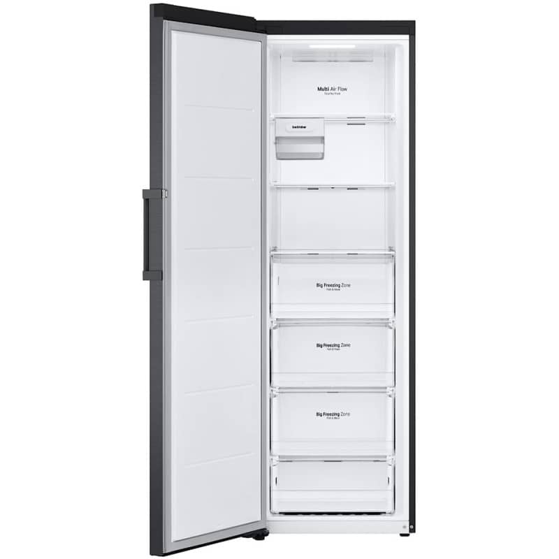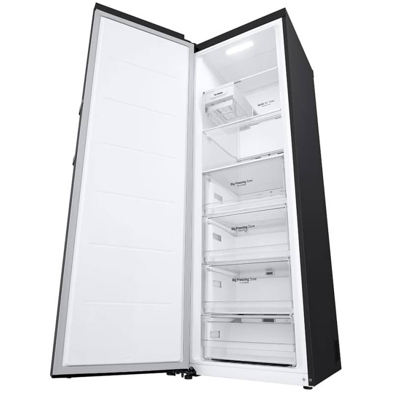 فریزر 12.5 فوتی ال جی GC-B514EAFM دارای 3 طبقه و 4 کشوی نسبتاً بزرگ است. برخلاف یخچال، در قسمت درب فریزر هیچ طبقهای وجود ندارد. از 4 کشوی موجود، 3 تای آنها کشوی Big Freezing Zone (منطقه انجماد بزرگ) نام دارند. این نامگذاری به دلیل ابعاد بزرگ این کشوها است که آنها را برای نگهداری مواد غذایی حجیم مانند تکههای بزرگ گوشت یا بستهبندیهای فلهای ایدهآل میسازد و امکان نگهداری طولانی مدت مواد غذایی را فراهم میکند. برای کشوی چهارم، نام یا امکانات خاصی ذکر نشده است. جنس طبقات این بخش نیز از شیشه حرارت دیده است.