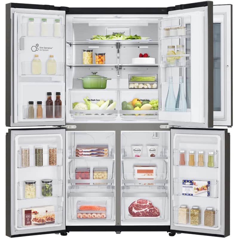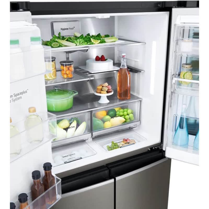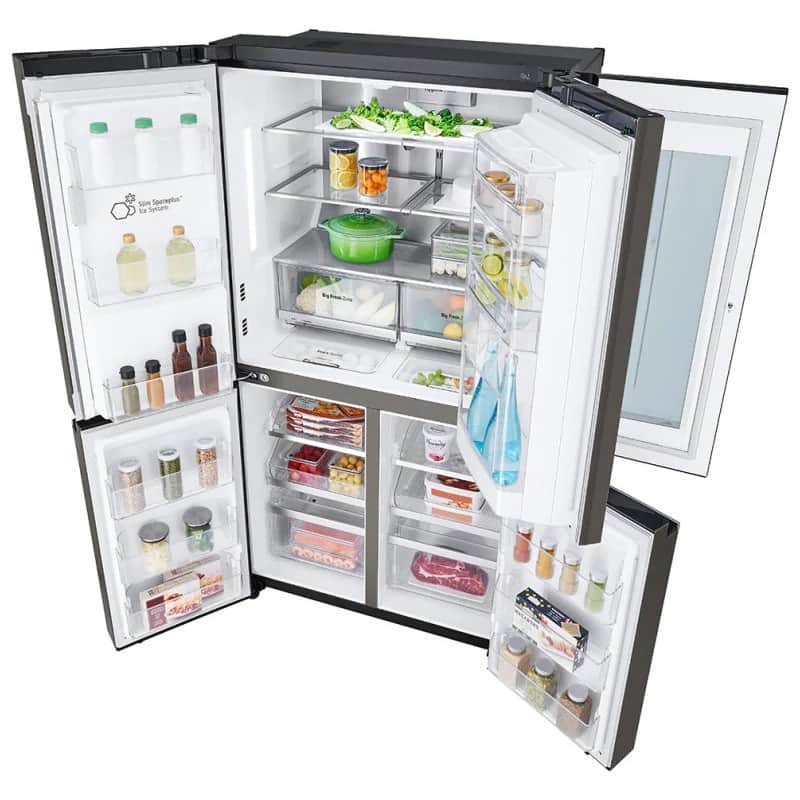 یخچال ساید بای ساید ال جی GR-X24FMKBL دارای 5 درب که یک درب آن به صورت دور این دور با قابلیت اینستاویوو طراحی شده است. سه درب بالا مربوط به یخچال و دو درب پایین مربوط به فریزر است. این طراحی باعث میشود که شما بتوانید به راحتی به تعدادی از قفسههای داخل یخچال بدون نیاز به باز کردن درب اصلی یخچال دسترسی داشته باشید. این ویژگی علاوه بر سهولت در استفاده، از اتلاف انرژی جلوگیری کرده و مانع خروج هوای سرد از داخل یخچال میشود.