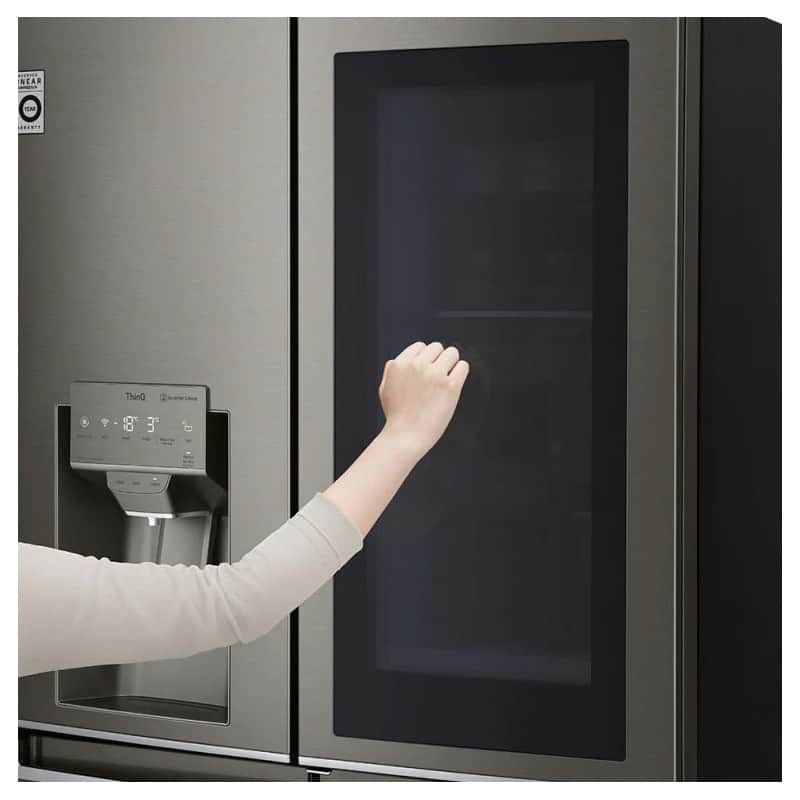 قابلیت InstaView در یخچال ساید ال جی X24 به شما این امکان را می دهد که بدون باز کردن درب یخچال، داخل آن را مشاهده کنید. با یک ضربه بر روی درب شیشه ای این یخچال فریزر 5 درب ال جی، نور داخلی روشن می شود و شما می توانید به راحتی محتوای یخچال را ببینید. این ویژگی کمک می کند تا از هدر رفتن انرژی جلوگیری شود، زیرا نیازی به باز کردن درب برای بررسی محتویات یخچال ندارید.