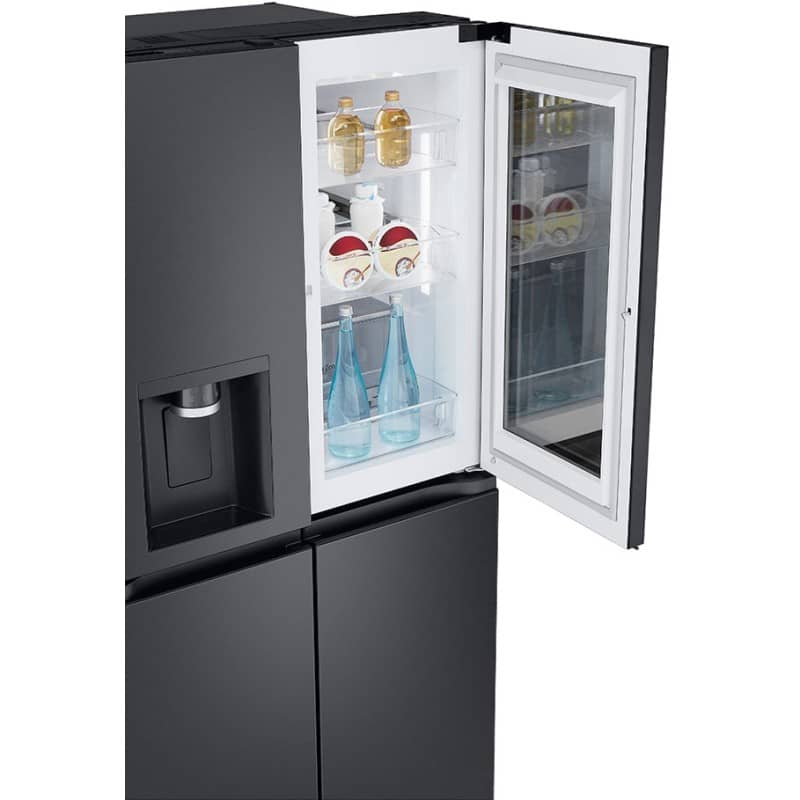 ویژگی InstaView شامل یک درب شیشه ای است که در حالت عادی مات و تیره است؛ اما با دو ضربهی آرام روی شیشه، این پنجره شفاف می شود و لامپ درون یخچال روشن خواهد شد از این رو می توان محتویات داخل یخچال را بدون باز کردن درب مشاهده کرد. این قابلیت در یخچال فریزر اینستاویو ال جی به افزایش طول عمر یخچال کمک بسیار زیادی خواهد کرد.