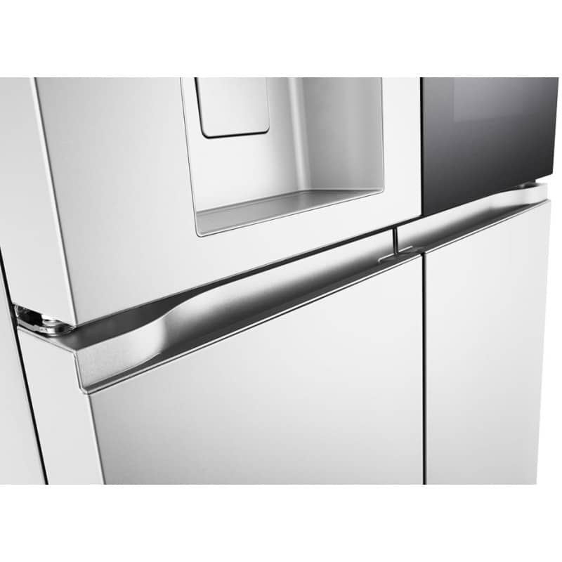 نمایشگر سگمنتی مخفی و دکمه های لمسی که در داخل این یخچال ساید بای ساید ال جی و در بالای آن قرار دارد به شما این امکان را می دهد که تنظیمات دما را به طور دقیق و جداگانه برای هر قسمت انجام دهید. وجود آبریز و یخ ساز اتوماتیک در این مدل باعث کاهش نیاز به باز و بسته کردن مکرر درب یخچال می شود. دستگیره های مخفی و پاکتی ظاهر شیک و متفاوت را به دستگاه داده و همچنین باز و بسته کردن یخچال و فریزر آسان شده است.
