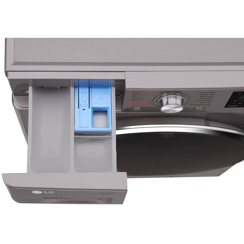 مشین لباسشویی J6 یکی از مدل های محبوب در میان کاربران است و این تا حد زیادی به طراحی آن مربوط می شود. رنگ زیبای خاکستری، درب بزرگ مشکی رنگ با شیشه حرارت دیده و مقاوم، صفحه نمایش بزرگ LED و دکمه چرخان برای انتخاب برنامه ها از جمله مشخصات طراحی این دستگاه هستند که ما را مجذوب کردند. ال جی می گوید جنس بدنه لباسشویی جی 6 از استیل ضد زنگ است یعنی کاملا مقاوم در برابر گرما، ضربه و خط و خش؛ از طرفی دیگر در این دستگاه امکان باز کردن کامل درب را دارید این در حالیست که در برخی از لباسشویی ها تنها درب با زاویه 150 درجه باز می شود پس با خیال راحت پتو و یا اقلام بزرگ را داخل درام بیندازید. ماشین لباسشویی ال جی Y6 نمونه مشابه اما با گنجایش دیگ 10 کیلوگرم است که برای خانوادههای پر جمعیت گزینه ایده آلی می باشد.