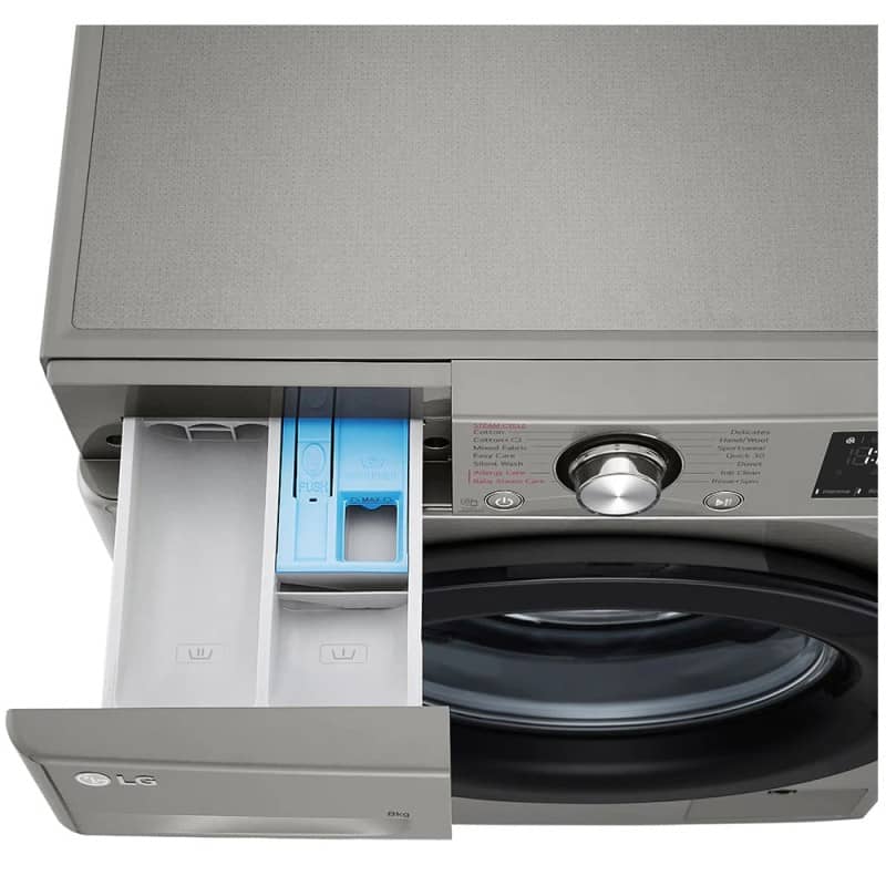 شستشو با بخار روشی برای شستشو است که در آن از بخار داغ برای از بین بردن کثیفی و لکهها استفاده میشود. ماشین لباسشویی 8 کیلویی ال جی F4R3TYG6P از فناوری Steam (شستشو با بخار) یا به طور دقیقتر Spa Steam بهره میبرد. نحوه عملکرد این قابلیت در این ماشین لباسشویی کُره ای ال جی R3 نقره ا ی (که البته مونتاژ مصر بوده ولی متعلق به برند خوشنام کرهای ال جی است) بدین صورت میباشد که بخار داغ با دمای بالا تولید شده و به عمق الیاف پارچه نفوذ میکند. این بخار قدرتمند، باکتریها، ذرات آلرژیزا (مانند مایتها و گرده گیاهان) و میکروبها را از بین میبرد و در نتیجه عناصر ایجاد کننده آلرژی را به طور کامل حذف میکند. به همین دلیل است که گاهی اوقات از آن به عنوان شستشوی ضدعفونی کننده (Allergy Care) یاد میشود. گرمای بخار، میکروبها، باکتریها و سایر آلایندههایی را که در غیر این صورت برای از بین بردن آنها به یک چرخه کامل شستشو با دمای بسیار بالا نیاز است، از بین میبرد، بنابراین باعث صرفهجویی در زمان و انرژی میشود. همچنین مدت زمان اتو کردن لباس را کاهش میدهد، زیرا بخار چروکهای عمیق پارچه را از بین میبرد و الیاف را نرم میکند. این دستگاه همچنین ممکن است دارای قابلیت Steam Refresh (تازهسازی با بخار) باشد که در عرض حدود 20 دقیقه بدون استفاده از آب یا مواد شوینده، لباسها را تازهسازی کرده و بوهای نامطبوع را از بین میبرد. از آنجایی که عملکرد بخار به شما امکان میدهد لباس خود را در دمای بالاتر بشویید و باکتریها و آلرژنهای بیشتری را نسبت به یک ماشین لباسشویی معمولی از بین میبرد، پس برای کسانی که دارای پوست حساس یا آلرژیک هستند و یا اگر کودکی در خانواده دارند این قابلیت بسیار کاربردی و مفید میباشد. در واقع بهترین چیز در مورد اکثر ماشین لباسشوییهای ال جی این است که تقریباً همه مدلهایی که دارای ویژگیهای شستشوی بخار هستند ادعا میکنند که 99.9% از مواد حساسیت زا را از بین میبرند.