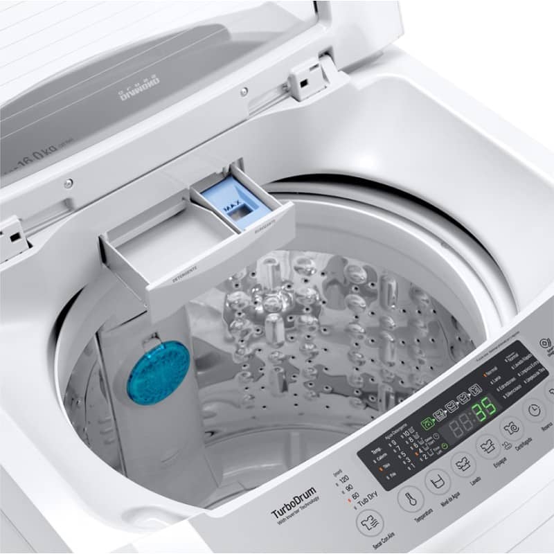 طراحی پیشرفته ماشین لباسشویی سفید ال جی T16 مدل T1685NEHT