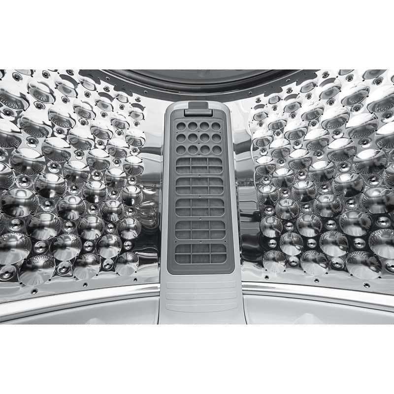 بنا بر گفته ال جی، دیگ شستوشوی این ماشین لباسشویی از جنس نیمه فولاد ضدزنگ (Semi Stainless Steel Drum) است که مقاومت بالایی در برابر زنگزدگی و سایش دارد. شکل داخل دیگ دارای طرح برجسته Embossing است که به کاهش اصطکاک و شستوشوی بهتر لباسها کمک میکند. دیگ شستوشوی این محصول دارای 1 عدد فیلتر پرزگیر (Lint Filter) است که وظیفه جمعآوری پرزهای اضافی و الیاف جدا شده از لباسها را بر عهده دارد و توصیه میشود این فیلتر پس از 2 الی 3 برنامه شستوشو خارج و تمیز شود. پنل سگمنتی دستگاه جلوی درب ماشین لباسشویی قرار گرفته و دسترسی به آن آسان است. صفحهنمایش از نوع Segment است که اطلاعاتی مانند زمان باقیمانده شستوشو و علائم اخطاری را نمایش میدهد و دکمههای پنل کنترلی فشاری هستند و برنامهها به زبان انگلیسی و عربی روی آن درج شدهاند. این محصول مجهز به ورودی آب سرد و گرم بهصورت جداگانه در پشت بدنه است که به دستگاه امکان میدهد بدون استفاده از هیتر داخلی، از آب گرم موجود در منزل برای شستوشو استفاده کند. همچنین در پشت بدنه، فیلتر خروج آب (Drain Pump Filter) قرار دارد که وظیفه جلوگیری از ورود اشیای کوچک (مانند سکه، کلید و سنجاق) به داخل لوله فاضلاب را بر عهده دارد تا از آسیب به پمپ تخلیه جلوگیری کند.