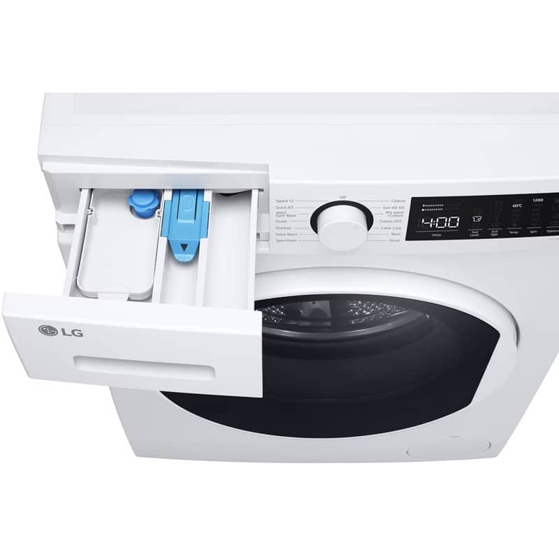 این مدل همچنین از فناوری Steam™ یا شستشو با بخار بهره می برد. این ویژگی، به خصوص در برنامه Allergy Care (شستشوی ضد آلرژی)، با تولید بخار داغ و نفوذ آن به الیاف پارچه، قادر است تا 99.9% از آلرژنهای رایج مانند کنههای گرد و غبار خانگی و باکتریها را از بین ببرد. این قابلیت همچنین به کاهش چین و چروک لباسها کمک شایانی میکند. حداکثر سرعت چرخش دیگ 1200 دور در دقیقه است که یک فاکتور بسیار مهم و تاثیرگذار بر عملکرد آبگیری دستگاه محسوب میشود. این سرعت بالا به بهبود روند آبگیری، کیفیت شستشو و جلوگیری از چروک شدن بیش از حد البسه کمک بسیار زیادی خواهد کرد. البته شما میتوانید سرعت چرخش دیگ را به صورت دستی بین 400، 600، 800، 1000 دور در دقیقه تنظیم نمایید و یا در صورت نیاز (گزینه No Spin)، آن را کاملاً غیرفعال کنید. قابلیت Delay Start (شستشو با تاخیر)، به دارندگان این لباسشویی امکان میدهد تا چرخه شستشو را با تاخیر 1 تا 23 ساعت تنظیم نمایند؛ این ویژگی برای زمانی که میخواهید شستشو در نیمهشب (برای بهرهمندی از تعرفه ارزانتر برق) یا زمانی که در منزل نیستید انجام شود، بسیار کاربردی است. بر روی نمایشگر یک آیکون اختصاصی برای Door Lock Indication (نمایشگر قفل درب) تعبیه شده است که نشان میدهد درب دستگاه قفل شده و چرخه شستشو در حال انجام است. در نهایت، قابلیت Child Lock (قفل کودک) به منظور قفل کردن تمامی دکمهها و عملکردهای لباسشویی (به جز دکمه پاور) تعبیه شده تا از تغییر تنظیمات اعمال شده توسط کودکان جلوگیری شود.