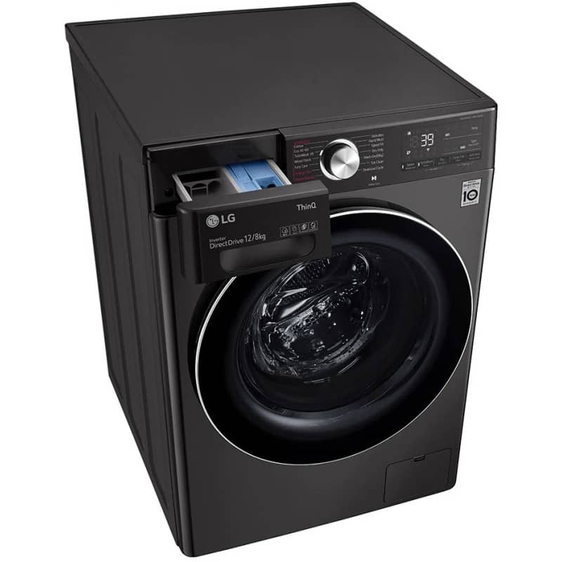 ماشین لباسشویی ال جی V12 از مدل های 12 کیلو سال 2021 است که در رنگ دودی و با درب بزرگ مشکی طراحی شده تا انتخابی ایده آل باشد برای کاربرانی که به یک لباسشویی بزرگ نیاز دارند. این ماشین لباسشویی ال جی با ظرفیت خشک کن 8 کیلو و امکان اضافه کردن لباس در میانه چرخه، می تواند عنوان به روز بودن را دریافت کند؛ همچنین موتور اینورتر دایرکت درایو که یکی از شگفتی های این دستگاه است قدرت واقعی را برایش به ارمغان آورده است. نوع موتور علاوه بر عملکرد بر قیمت لباسشویی ال جی نیز تاثیر مستقیم خواهد گذاشت. تعداد 14 برنامه و 6 حالت شستشو در لباسشویی V12 در اختیار شما قرار گرفته اند تا بتوانید متناسب با هر لباس، برنامه دلخواه را انتخاب نمایید.