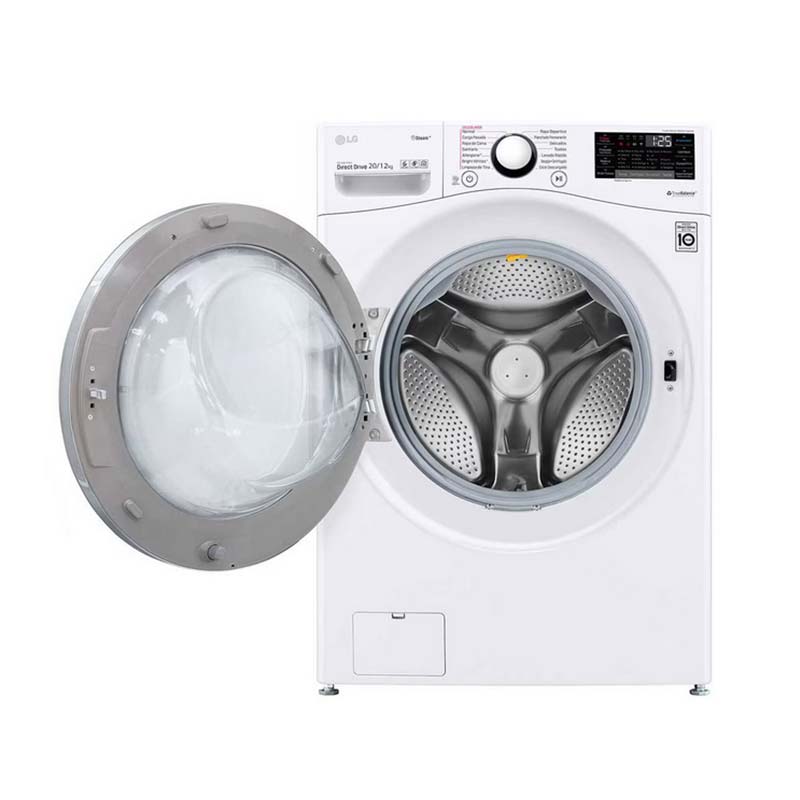 ماشین لباسشویی و خشک کن ال جی V21 از طراحی زیبا و مدرنی برخودار است تا متناسب با انواع سلیقه ها باشد. بدنه ضد خش فولادی این محصول که به رنگ سفید طراحی شده است می تواند جلوه ای بسیار لوکس به لاندری یا آشپزخانه شما بدهد. درب این ماشین لباسشویی 20 کیلو کاملا تخت طراحی شده است به گونه ای کاربران شاهد هیچگونه بیرون زدگی ای نباشند. پنل تننظیمات و نمایشگر هوشمند لمسی مشکی رنگ در قسمت بالایی V21 قرار گرفته اند. لازم است که به بدانید درب بزرگ این ماشین لباس شویی استاندرد طراحی شده است و شما می توانید بدون هیچ مشکلی و به راحتی لباس ها را از دیگ خارج و یا وارد نمایید.