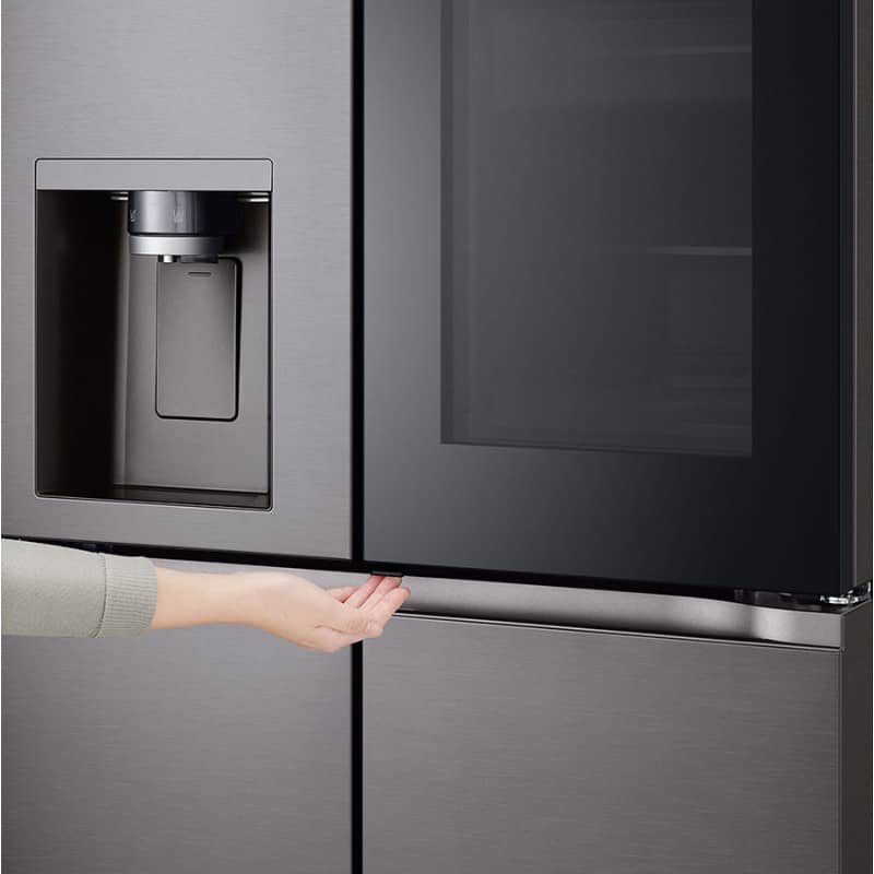 همانطور که از عکسهای گالری محصول مشخص است این محصول دارای قابلیت اینستا ویوو ال جی X39 (InstaView) میباشد که از جنس شیشه است؛ این قسمت در حالت عادی کاملاً مشکی است و داخل یخچال دیده نمیشود؛ اما اگر 2 بار به آرامی بر روی آن ضربه بزنید چراغ یخچال روشن شده و داخل یخچال قابل مشاهده است و با این وجود شما میتوانید حتی بدون باز کردن درب یخچال نیز مواد غذایی داخل قسمت یخچال را ببینید. همانطور که عنوان شد این محصول دارای آبریز و یخریز میباشد که روی درب چپ قسمت یخچال تعبیه شده است که یک اهرم مشترک برای خروج آب و یخ روی آن وجود دارد. همانطور که پیشتر نیز اشاره شد باید از پنل کنترلی که روی آبریز قرار دارد تعیین کنید که میخواهید آب از دهانه آبریز خارج شود یا میخواهید یخ را به صورت حبهای (Cubed Ice) یا خرد شده (Crushed Ice) از قسمت یخریز خارج نمایید. این یخچال فریزر به صورت مستقیم به آب شهر وصل میشود و یک فیلتر تصفیه آب نیز در قسمت چپ درب یخچال نیز قرار دارد. به این ترتیب همیشه آب آشامیدنی تمیز در اختیار داشته و نیازی نیست نگران خالی شدن مخزن آب باشید.