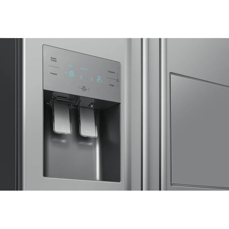 روی درب دستگاه فریزر نمایشگر سگمنتی تعبیه شده که امکان مشاهده و تنظیم دمای بخش های مختلف یخچال و فریزر، کنترل دمای یخچال فریزر، نمایش وضعیت فیلتر آب، نمایش وضعیت قفل کودک را برای کاربران فراهم می سازد. همچنین بخش آب ریز و یخ ریز این یخچال فریزر دو درب سامسونگ با طراحی کاربردی، دسترسی دائمی به آب خنک و یخ را ممکن می سازد و ارتفاع مناسب آن امکان استفاده آسان با لیوان یا پارچ را نیز فراهم کرده است.