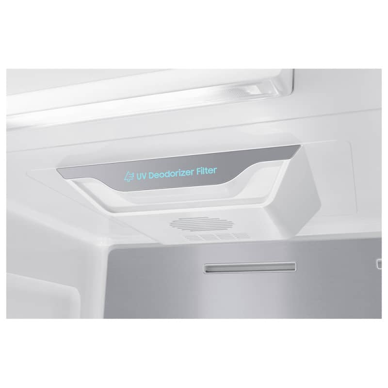 یخچال فریزر ساید بای ساید سامسونگ RS80 با رنگ زیبا و خاص سفید برفی، جلوهای شفاف، تمیز و مدرن به آشپزخانه شما میبخشد. این رنگ روشن و دلنشین، بهراحتی با انواع دکوراسیونهای داخلی هماهنگ شده و باعث میشود فضای آشپزخانه بزرگتر و روشنتر بهنظر برسد. علاوه بر زیبایی ظاهری، پوشش این رنگ مقاومت خوبی در برابر لکهها و اثر انگشت دارد و نگهداری یخچال را سادهتر میکند. یکی از ویژگیهای برجسته در طراحی این مدل، استفاده از دستگیرههای فرورفته (Recessed) است که بهصورت هوشمندانه داخل بدنه درب تعبیه شده است. این طراحی دستگیره باعث شده تا سطح درب کاملاً صاف و یکدست باقی بماند و از ظاهر شلوغ و برجسته جلوگیری کند. با این نوع دستگیره، باز و بسته کردن درب بدون نیاز به فشار زیاد و با کمترین فضای اشغالی انجام میشود. همچنین، یخچال فریزر 30 فوت سامسونگ RS80 سفید به فناوری Auto Open Door مجهز است که با یک لمس کوچک، درب بهطور خودکار باز میشود. این ویژگی کاربردی برای مواقعی که وسیلهای در دست دارید بسیار مناسب بوده و استفاده از یخچال را راحتتر میکند. تکنولوژی UV Deodorizer Filter در این یخچال با استفاده از ترکیبی از فیلترهای پیشرفته و اشعه فرابنفش (UV) به تصفیه هوای داخل یخچال میپردازد. این سیستم ابتدا بوهای نامطبوع را از طریق یک فیلتر کربن فعال جذب کرده و سپس با تابش نور UV، تا 99.99% از باکتریها و میکروبهای موجود روی سطح فیلتر را از بین میبرد. این فرآیند باعث جلوگیری از انتقال بو بین مواد غذایی مختلف و حفظ طعم و عطر اصلی آنها میشود و فضای داخلی یخچال را همواره پاکیزه و بهداشتی نگه میدارد.
