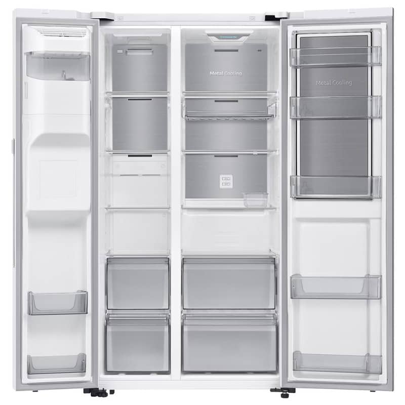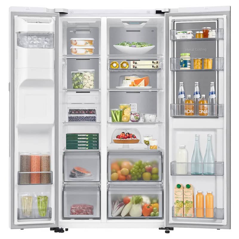 طراحی مدرن و امکانات نوآورانه در یخچال ساید بای ساید سامسونگ RS80 سفید