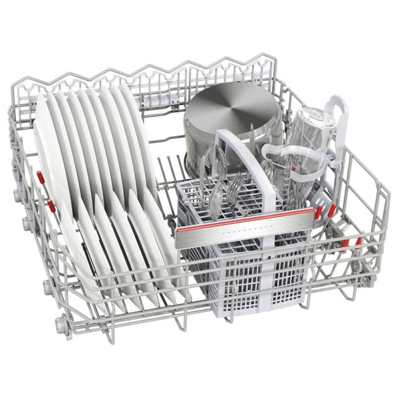 ظرفشویی 13 نفره بوش آلمان داخل آن با استیل ضد زنگ کار شده است و دارای 3 طبقه مجزا است تا به راحتی بتوانید هر نوع ظروفی را داخل آن بچینید. سبد ها به صورت فلزی تولید شده اند که طبقه اول برای قرار دادن لیوانها، فنجانها، و ظروف کوچک مناسب است. سبد وسط برای قرار دادن بشقابها، کاسهها، و سایر ظروف بزرگتر مناسب است و با قابلیت هولد کاپ به راحتی میتوانید فنجان ها را در داخل آن قرار دهید و باعث نظم دهی شود ودر سبد آخر نیز این قابلیت تعبیه شده است همچنین سبد پایین با قطر 60 سانت برای قرار دادن قابلمهها، تابهها و سایر ظروف بزرگ مناسب است. برنامه EasyGlide باعث به حرکت درآوردن سبدها میشود سیستم VarioFlex Pro به شما امکان میدهد تا با تغییر موقعیت میلهها و تکیهگاههای سبدها فضای داخلی ماشین ظرفشویی را به دلخواه خود تنظیم کنید. این مدل با ظرفیت 13 نفره برای خانواده های پر جمعیت مناسب ترین گزینه ممکن می باشد. ظرفشویی بوش سری 8 در سال 2023 تولید شده است. از طریق بازوان آب را به طور کامل به ظرف ها میپاشد تا درخشنده و تمیز شوند.